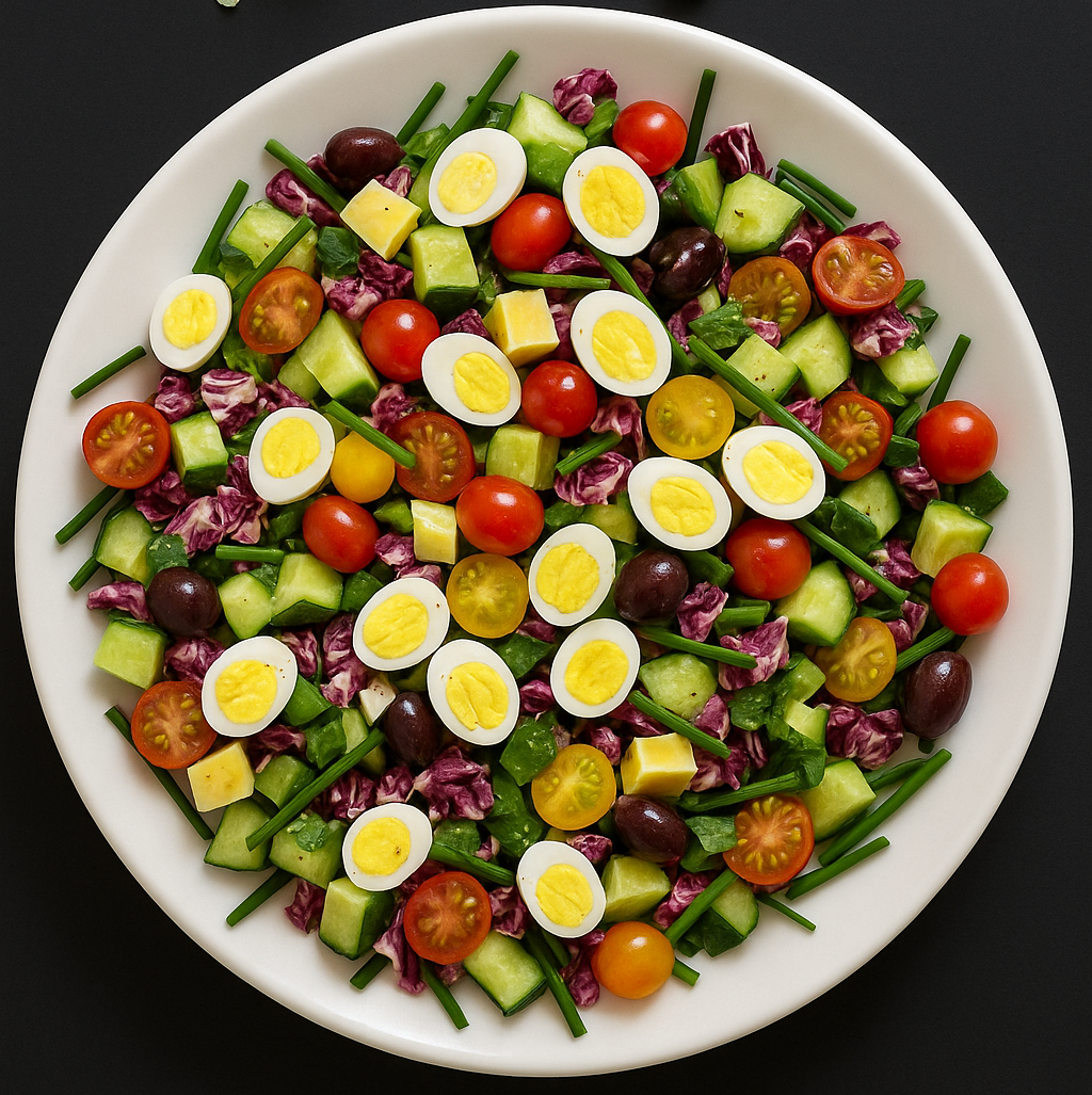 A protein-packed salad featuring all the usual Cobb fixings (bacon, avocado, blue cheese) with tender quail eggs for a fancy twist.