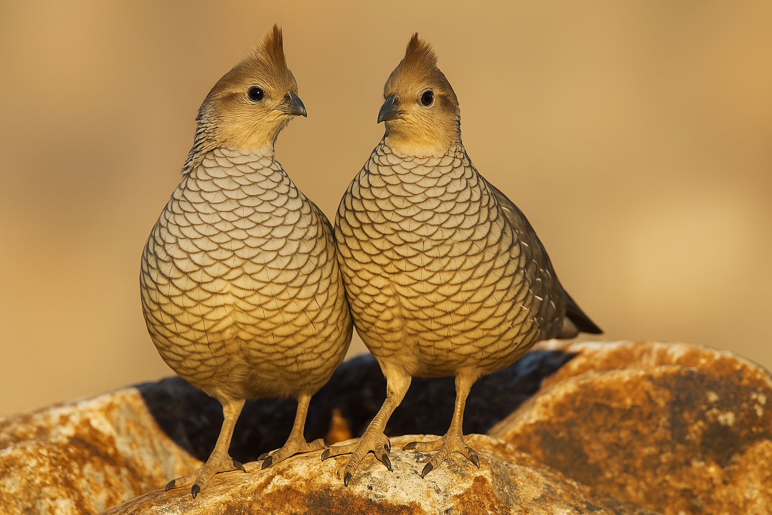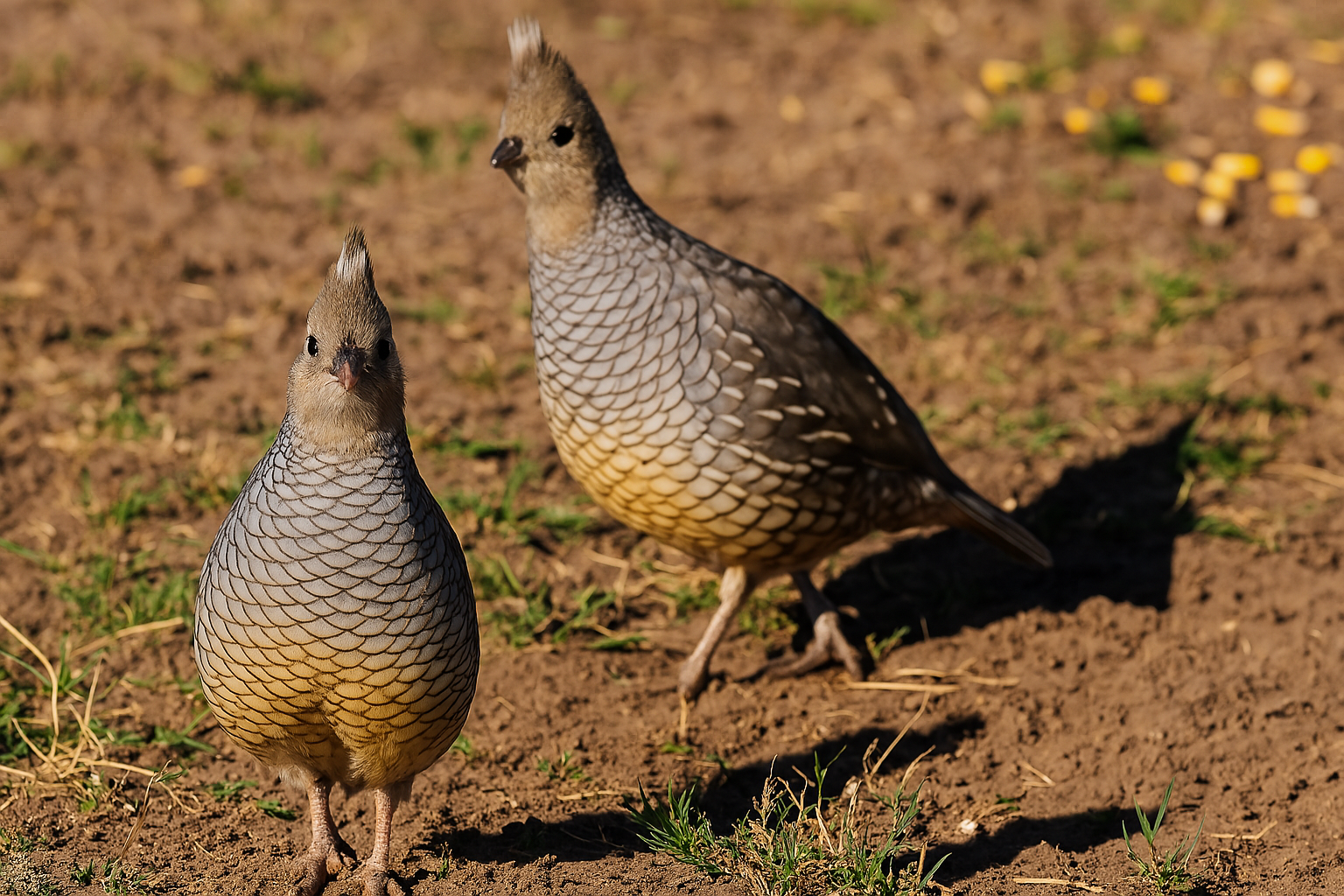 Scaled quail exhibit clear differences between males and females. Males have a more prominent crest on their head, a darker, richer coloration with a more defined scaled pattern, and a black throat patch. Females tend to be slightly more muted in color, with a less noticeable crest and a more subtle scaled appearance. These differences are typically easy to spot, especially in mature birds.