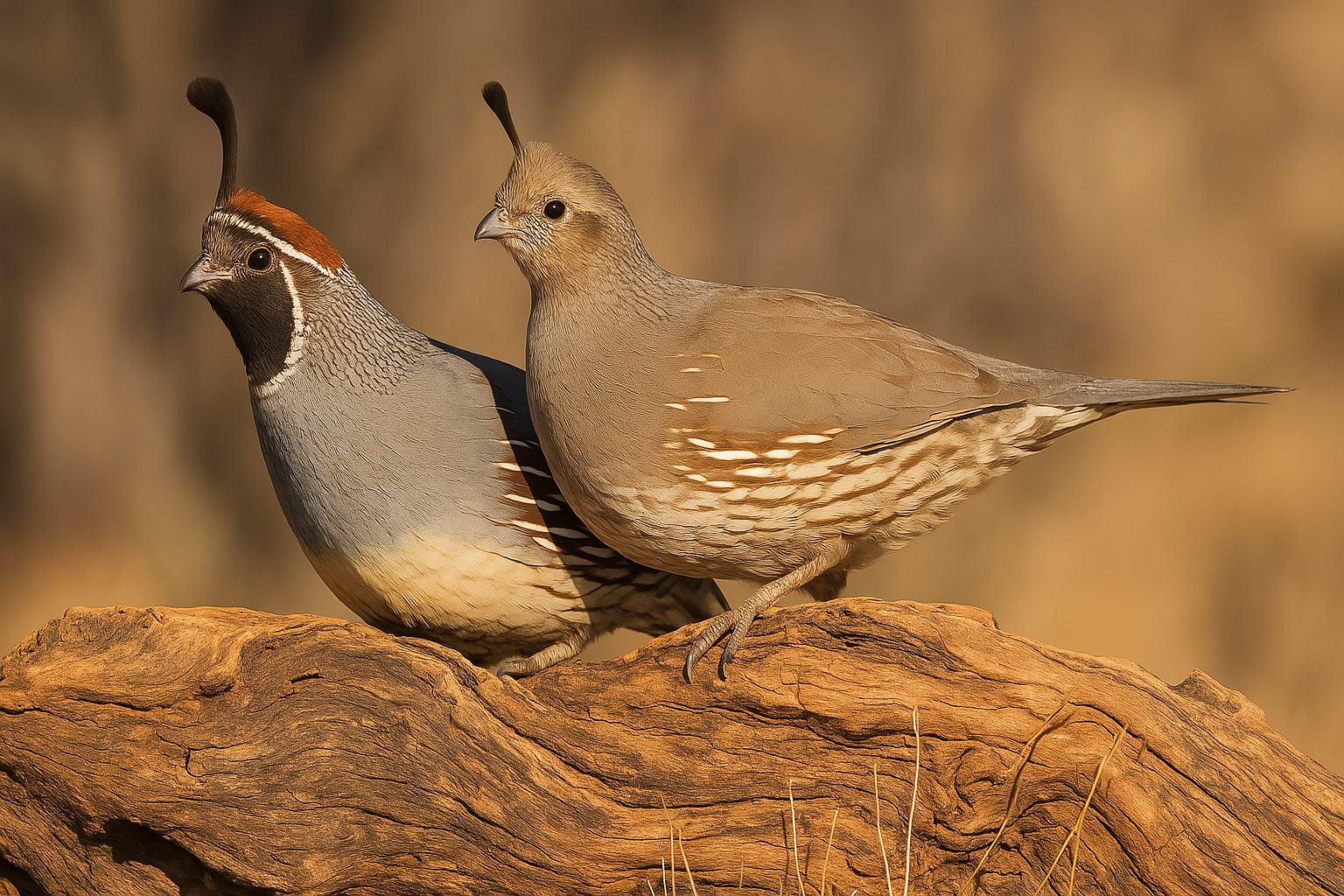 Both live in groups (coveys) and walk on the ground a lot. California Quail are more likely to be seen in suburban gardens and chaparral, while Gambel’s Quail prefer dry, open desert areas with cactus and mesquite.