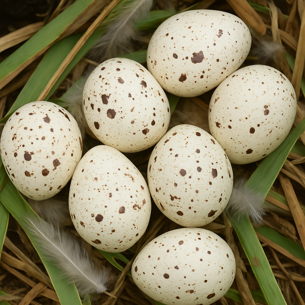 Gambel’s quail eggs are small and oval, typically weighing around 9-12 grams. Their shells are cream-colored with distinctive brown speckling, giving them a beautiful, natural camouflaged appearance. These eggs are slightly smaller than domestic quail eggs and are well-suited for incubation or as ornamental additions due to their unique patterning. Their compact size and speckled design blend perfectly with the quail's desert habitat.