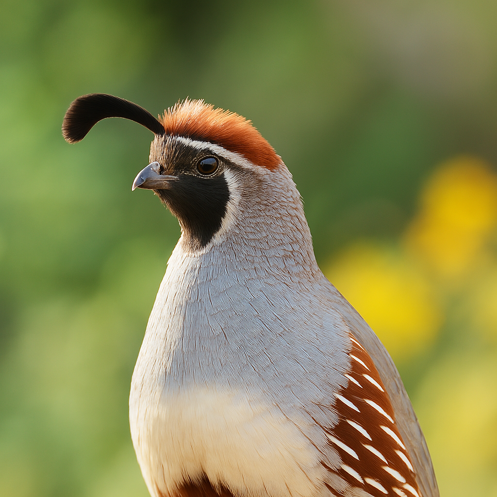 California Quail has chestnut-colored flanks with white streaks. Gambel’s Quail also has streaked flanks, but they are lighter and not as rich in color.