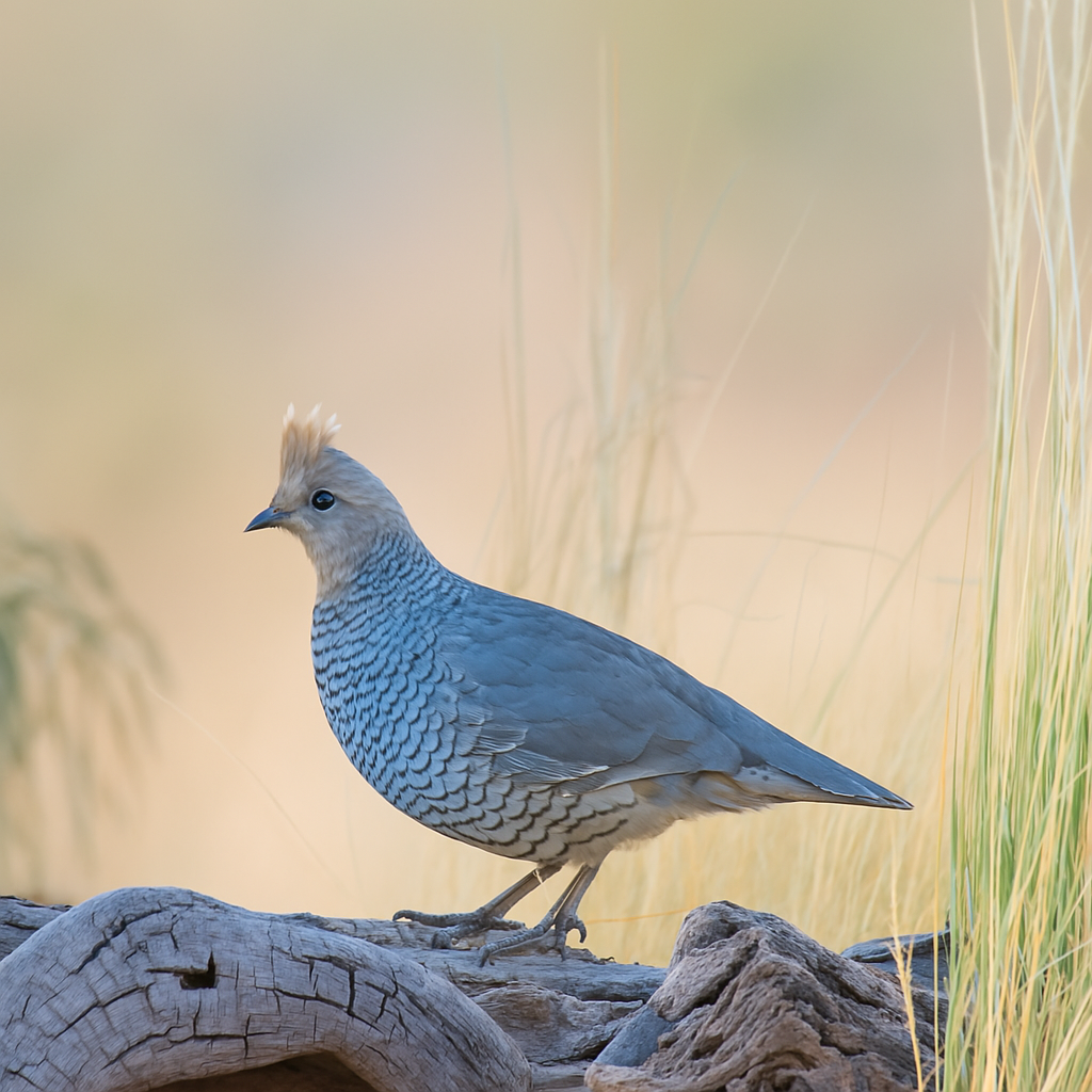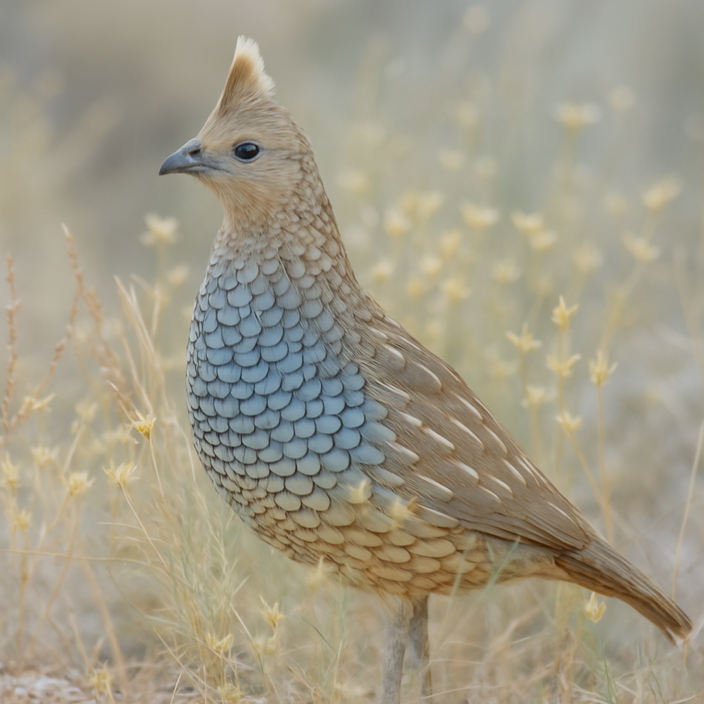 The Texas Blue Scaled Quail (Callipepla squamata), also known as the Blue Quail or Cotton Top, is native to the southwestern United States and northern Mexico. These quails have been admired for their unique scaled appearance and adaptability to arid climates. Historically, they have been hunted as game birds and are known for their ability to thrive in challenging desert environments.